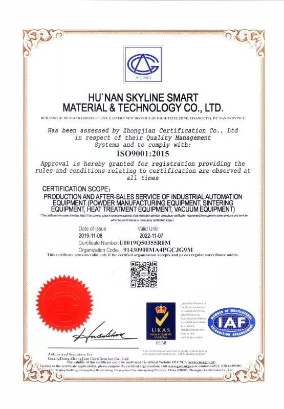 一直以來,湖南天際智慧材料科技都以質量為上出發給客戶創造價值,積累了廣泛的業內聲譽和客戶口碑。本次 ISO9001:2015認證只是新的開始,未來公司依然會繼續探索,進一步強化質量管理機制,積極履行質量管理的保障責任,致力于通過先進創新的解決方案技術手段,努力打造專業的創新材料解決方案平臺,為您打造高端智能裝備和新材料制備技術世界領導品牌。
